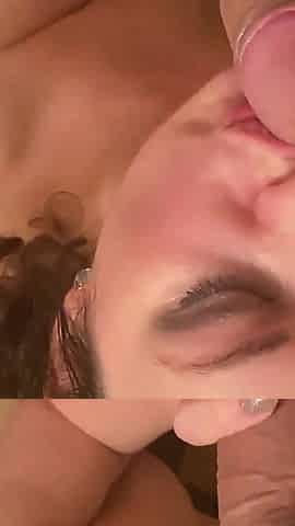 Hotwife Slut Gets a Huge Facial From a Stranger She Met on the Street