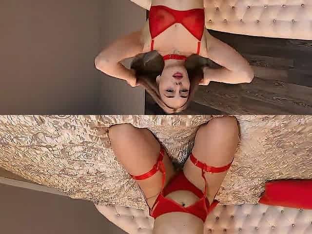 Fat mother-in-law takes off her panties and masturbates to get son-in-law's cum on her ass bottom view