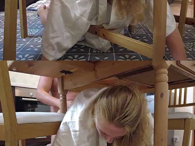 Застряла под столом, и меня трахнул в попку брат мужа, и накончал спермы в киску
