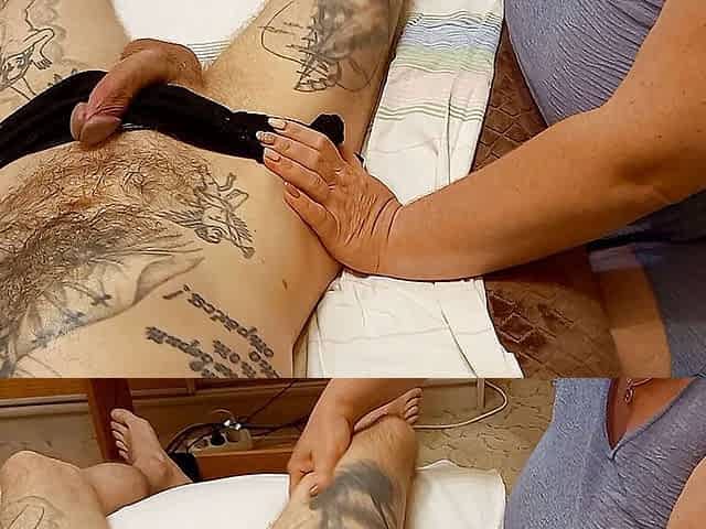 Mother-in-law licks my ass and gets a portion of cum on my body