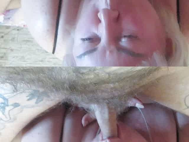 Slicing endings, cum in mother-in-law's mouth and face as she loves cum
