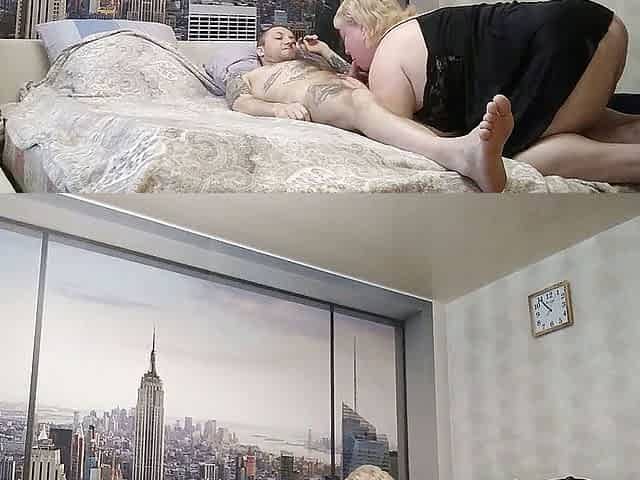 Mature mother-in-law makes a homemade blowjob