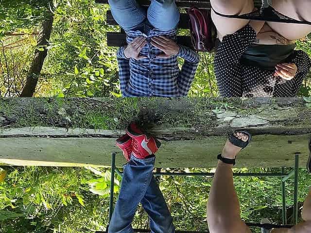 Son-in-law jerks off his dick to mother-in-law pissing in nature