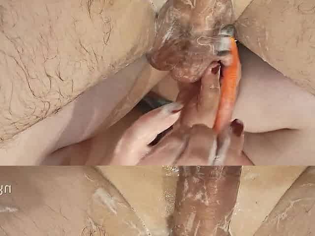 a bulky woman licks my booty and jerks off a penis with strained eggs