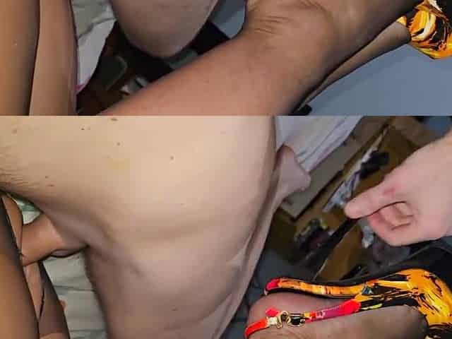 Skinny mom with small tits & hairy pubis & guy