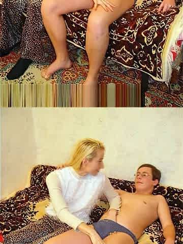 Russian mature mom in stockings and young boy
