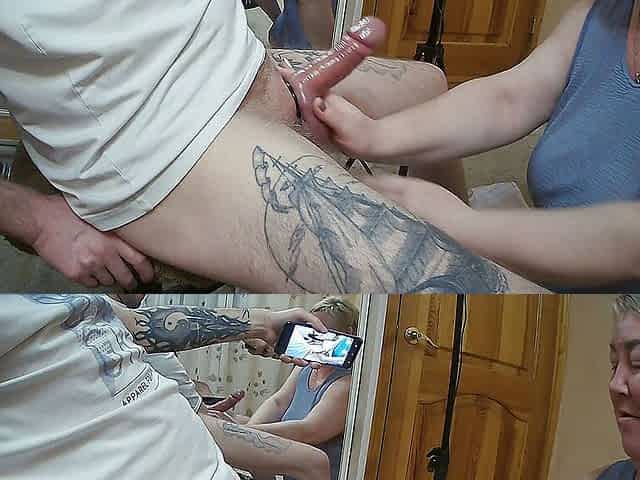 Instead of a foot massage, BBW amateur mom jacks off a Russian mature cock until it cums