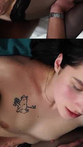 Renata Fox with natural boobs wearing stockings gets fucked