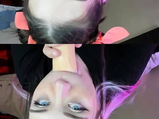 Russian teen babe deepthroats and masturbates on webcam