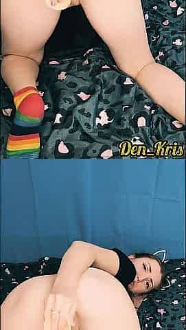 милая школьница с кошачьими ушками после уроков нежно стонет и сома себя развлекает большим дилдо