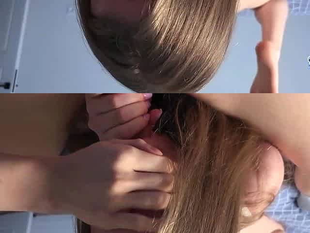Wife in sexy lingerie uses body language to get me to finish on her hair