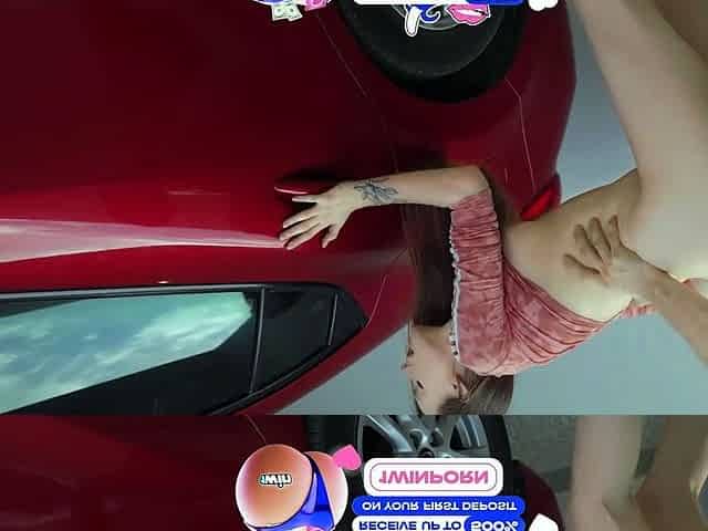 Teen seducing stranger in car for steamy sex. Arinafox.
