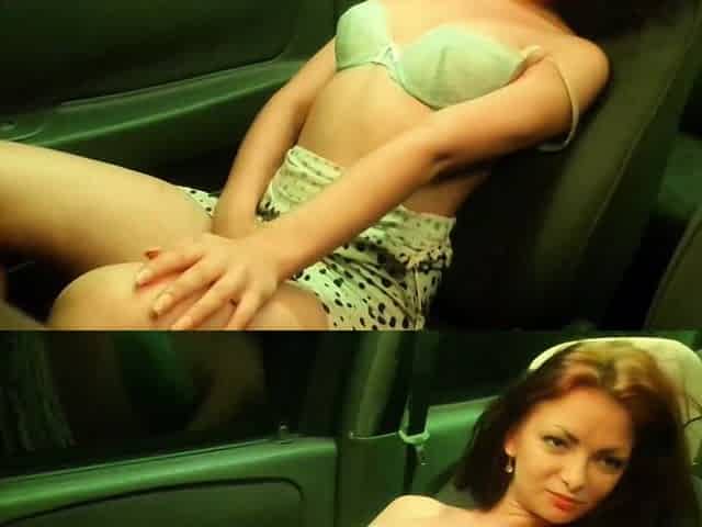 Teen Mira masturbates in stepdad's car