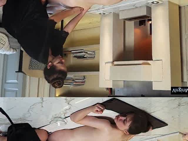 Russian teen voids urine on the kitchen sides