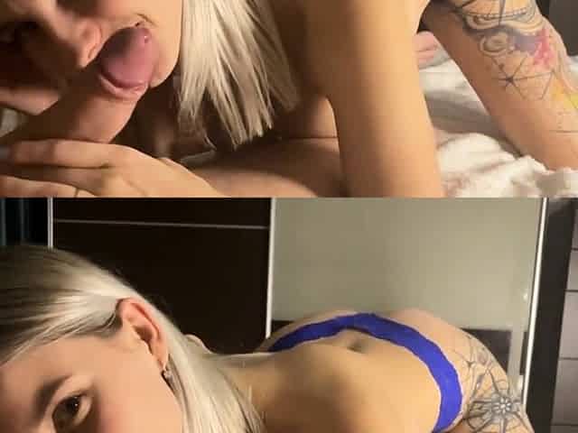 Big-Titted Blonde Amateur Gives a Great Blowjob Before Bed