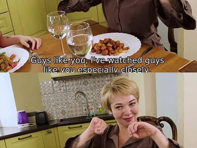 Old and sexy brunette spreads legs for friends stepson