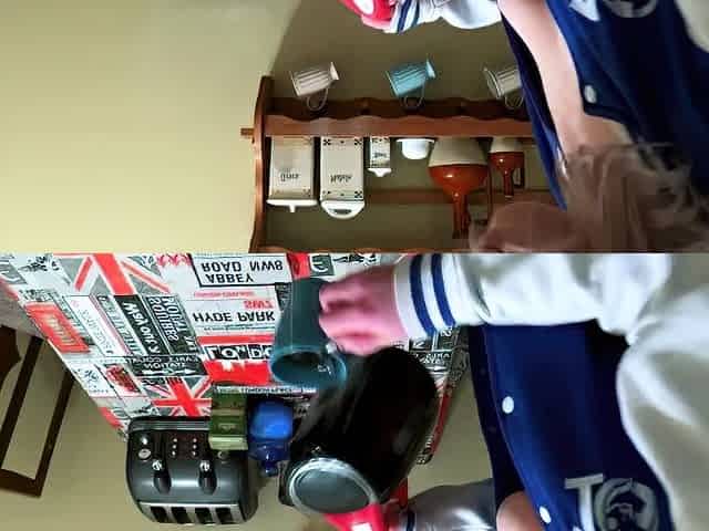 Tall Russian teen Trasy is fingering her wet pussy on top of the kitchen table
