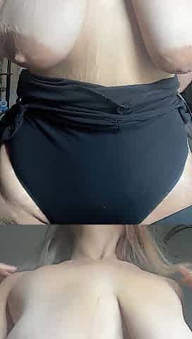 Youthful golden-haired with large saggy breasts fingers cunt on livecam