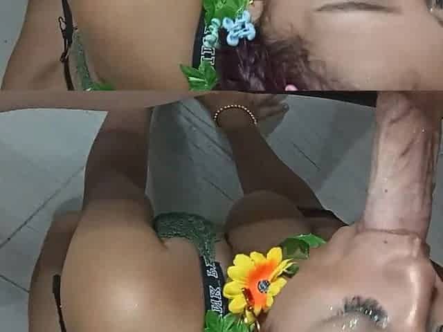 "Brunette delivers a steamy blowjob before masturbating erotically"