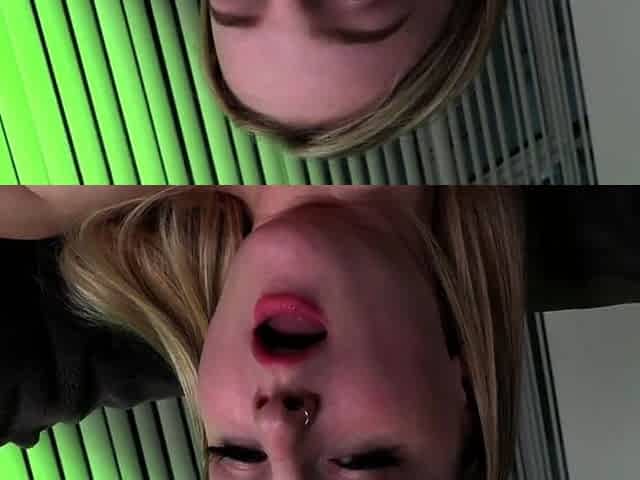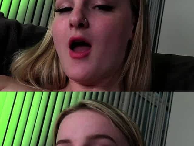 "Full nude, horny blonde having fun in front of camera"