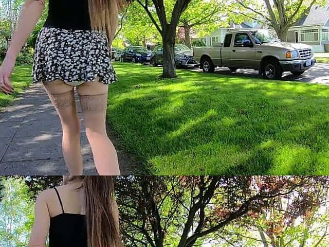A walk with Longpussy. Pissing, Jiggling Tiny Tits Outdoors and my Sloppy Pussy.