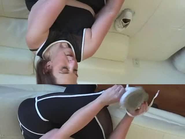 Ada La Pinky strips in seaboat and removes bra showing boobs