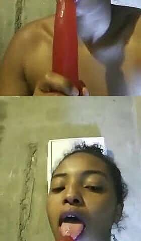 Ebony sucking dildo sloppily