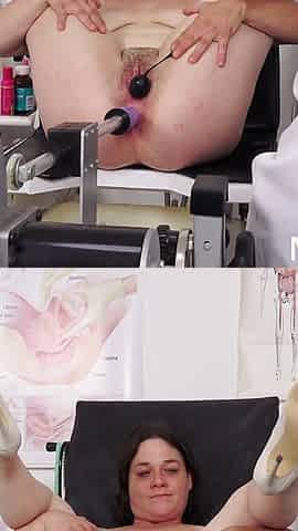 Huge Shaking Orgasm of Horny MILF Lara Crow in Gyno Chair with Anal Fucking Machine