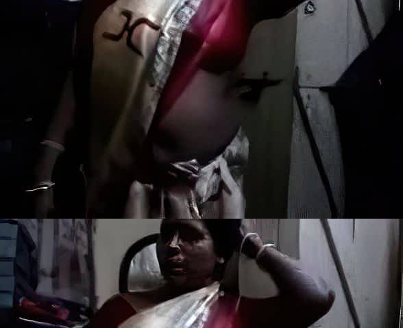 Satin Silk Saree Maami maid showing Boobs