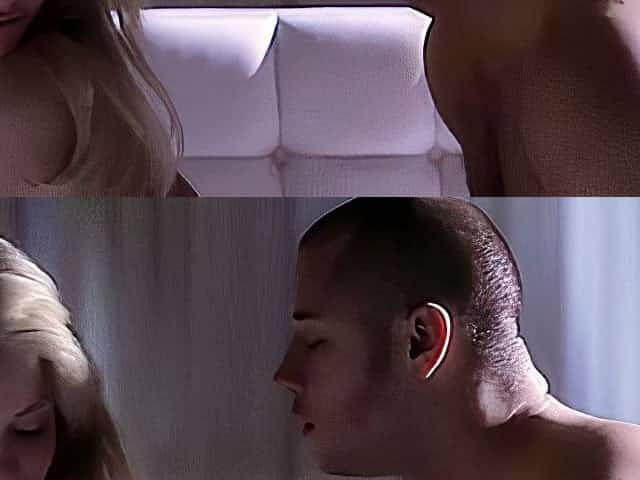 Excellent golden-haired in a satin, yellow blouse is riding a emo hard cock, late at night