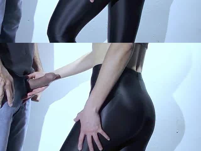 THIS GUY CUMS OVER MY SHINY SPANDEX LEGGINGS