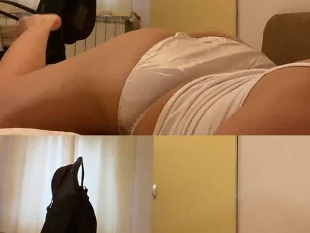 French amateur babe in satin lingerie gets pounded doggystyle, enjoys clothed sex, blowjob, and rimjob!