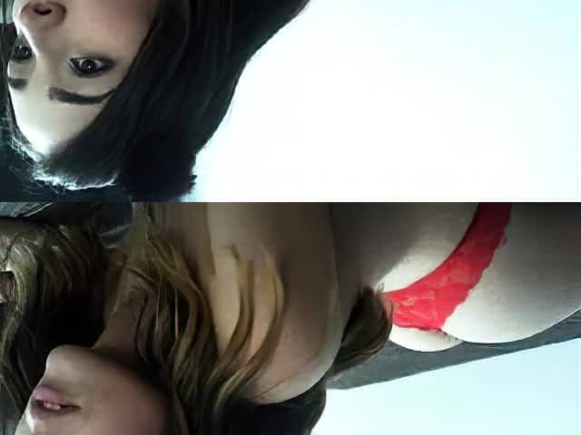 Holly Pearce and Satin Bloom play with strap on