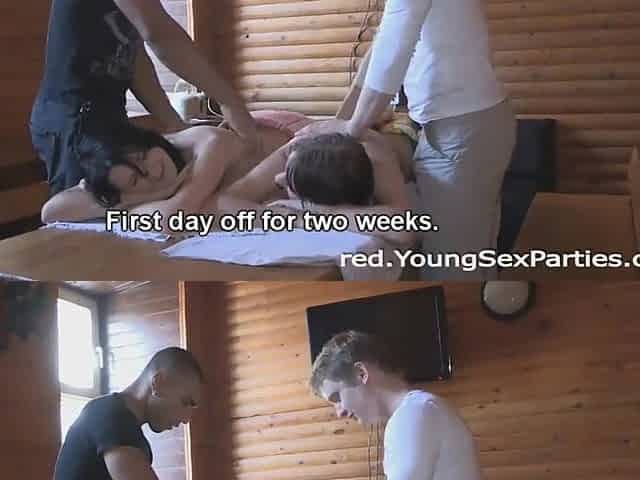 Hot fucking in a sauna, A hot steamy sauna and a relaxing massage from their boyfriends made these teen cuties so horny that the