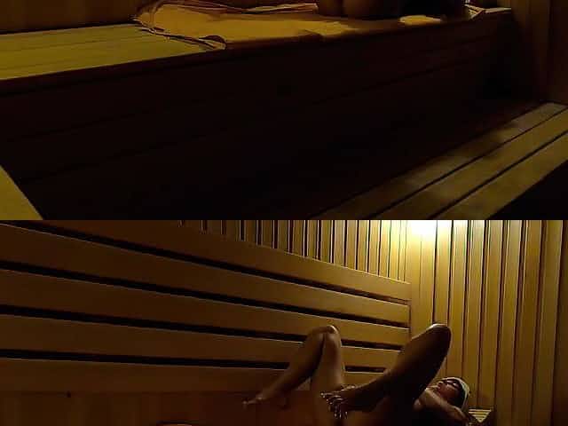 Sauna is a perfect place for solo masturbation and toying