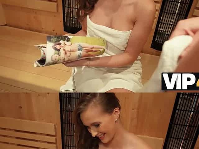 VIP4K. Naked dude entered meets chick with stunning body in her sauna