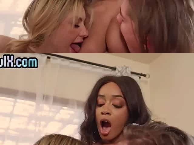 Nasty busty nubian turns massage session in trio