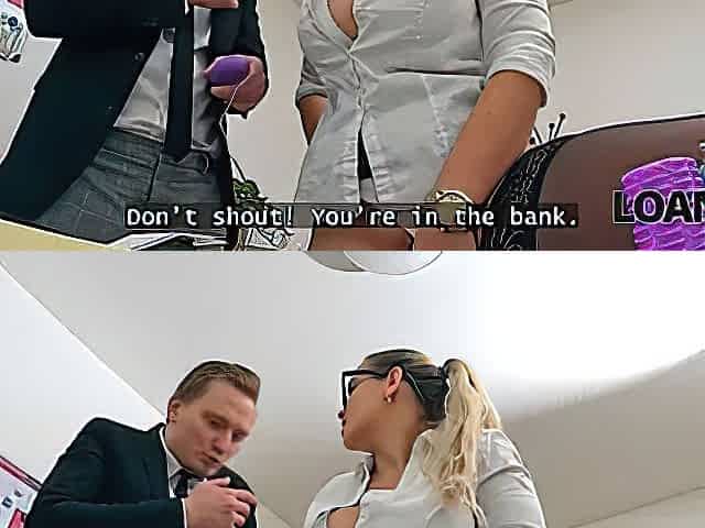 Loan4k. she got a loan and hopped on stranger's cock in the bank while her hubby was observing