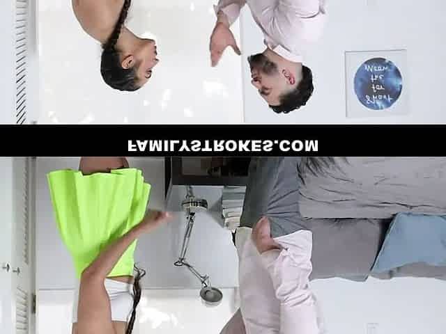 Familystrokes- cute stepsis (Vienna Black) flashes boobie and nails step-brother