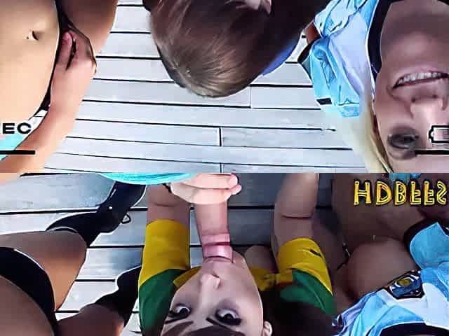 Cuties Brooke Belle and Mia Lelani blowjob a big cock