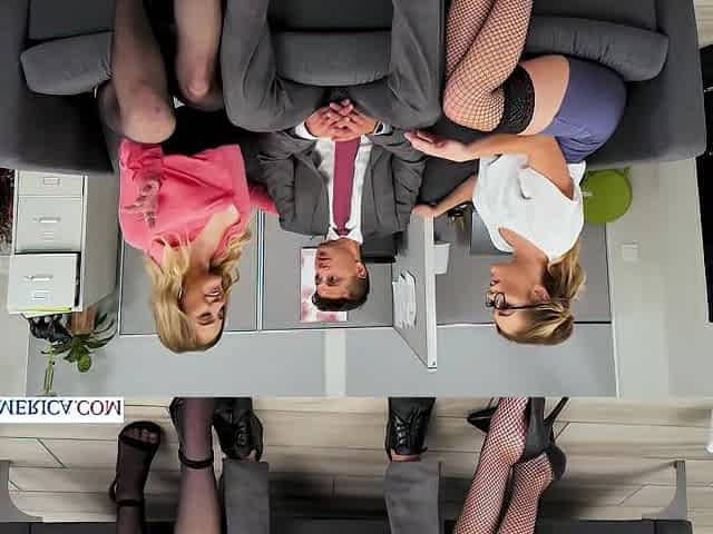 Katie Kush and Kenzie Madison take advantage of the new guy and have their way with him - naughtyoffice