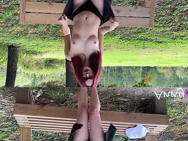 Hot Girl In Secretary Outfit Strips, Masturbates On Bench