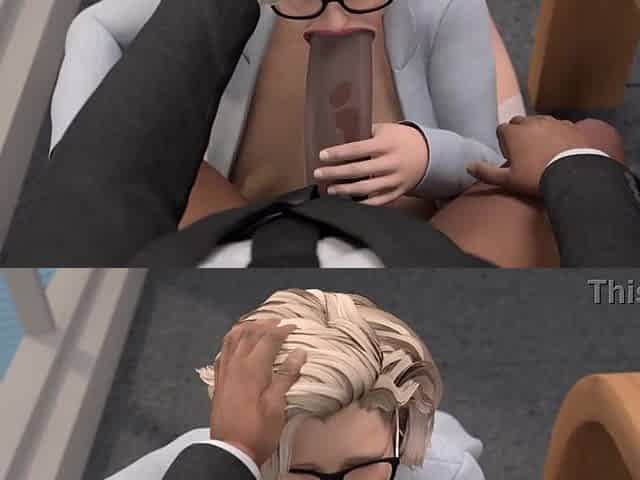CUM ON GLASSES. Secretary with glasses sucks boss's penis for salary