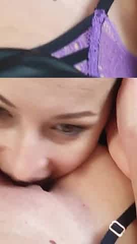 Close-up of a milf giving an intense blowjob and swallowing every drop