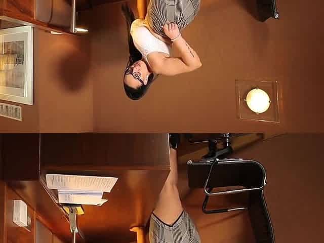 Naive secretary made a mistake and got drilled by her boss on her desk