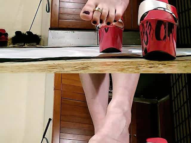 Hawt constricted vagina brunette hair secretary with high heels and a constricted costume shows legs and booty