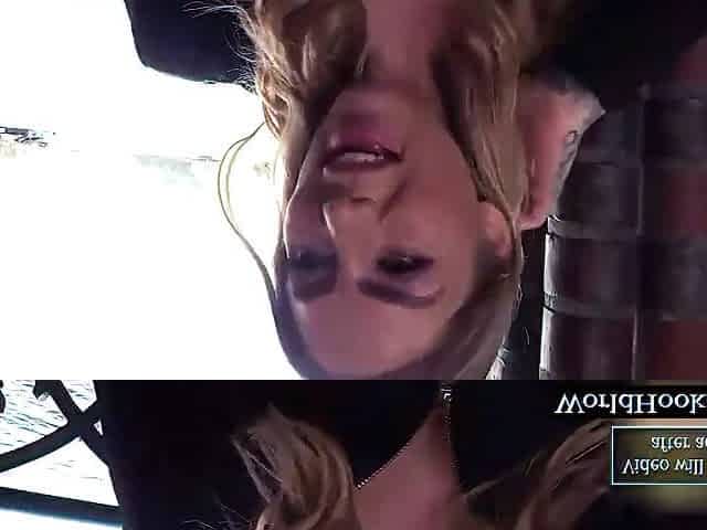 Sexy brunette hair sucking neighbors huge knob outdoor