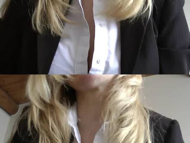 Depraved slut shows her tits and pussy to her boss. Striptease 2