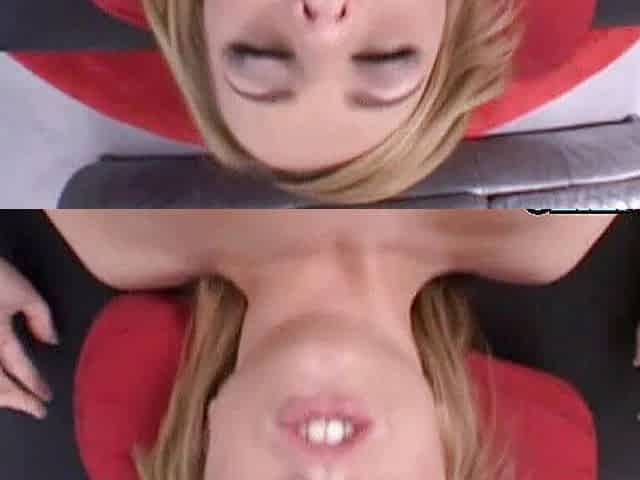 Busty blonde has cum all over her face after guy nails her
