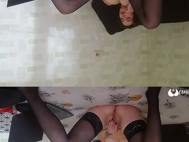 Sexy secretary with Big Tits Gives Handjob and Blowjob in Stockings